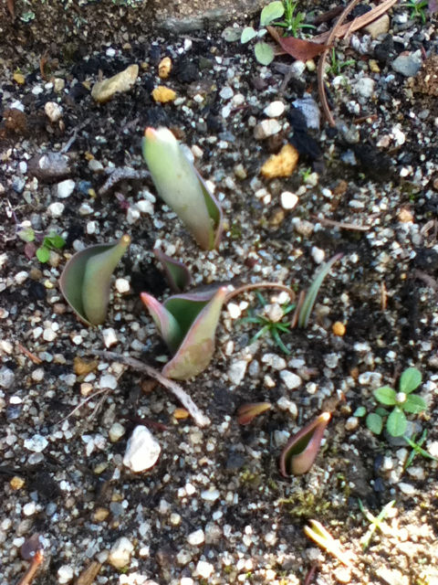 去年掘り起こすのを忘れてしまったチューリップの球根が芽をだしました。昨日は雪が降るくらい寒かったのに植物はちゃんと春を迎える準備をしてるんですね。なんだかお礼を言いたくなるのは私だけでしょうか?
