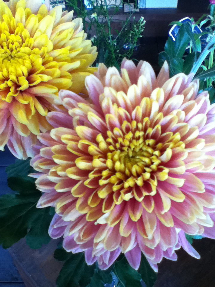 写真の花は菊で「エポック」という名前です。菊のイメージからはちょっと離れたダリアのような