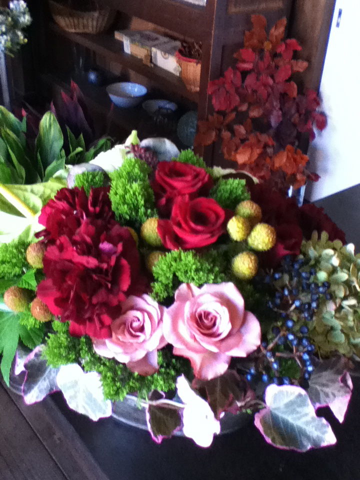 この時期は朝晩が寒いぐらいで日中は秋特有の乾いた爽やかさがあります。こんな時はこっくりとした深い赤や深い緑が恋しくなります。渋めの花を取り揃えております、是非一度お立ち寄りくださいませ。