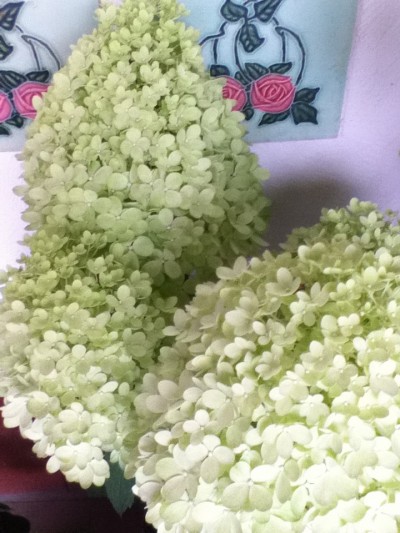 こちらは鉢植えになりますが、ピラミッドあじさいです。写真より実物のほうがグリーンがとってもきれいです。最近とても人気があります。普通のあじさいとはひと味もふた味もちがいますね。