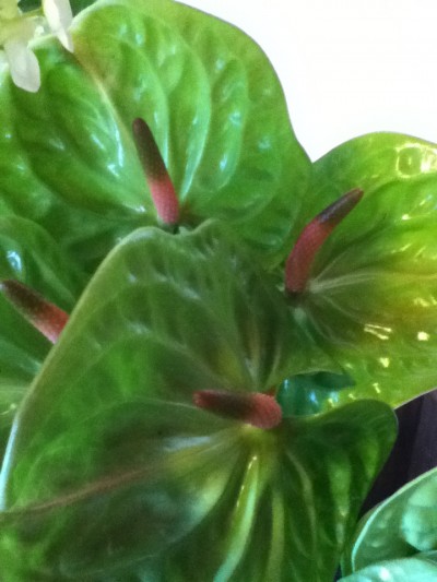 そしてこちらはおなじみのアンスリウムです。アンスリウムはいろんな色のものが出回ってます。夏の雰囲気です。長持ちします。