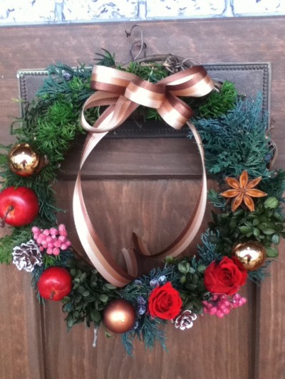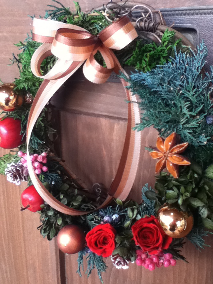 プリザーブドフラワーでご自分でクリスマスリースを作ってみませんか?講習会で好評だったプリザーブドフラワーのクリスマスリース、