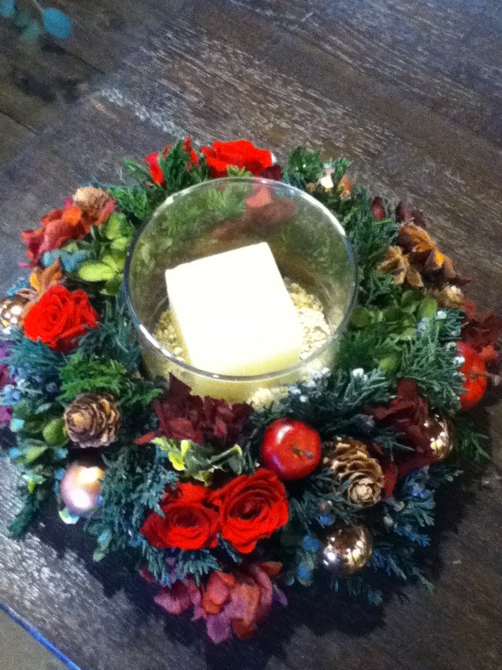 ゴージャスなキャンドルアレンジです。こちらはキャンドルとキャンドルホルダーもついて5500円です。ものすごく存在感があって贈り物にも最適です。皆さんも是非チャレンジしてください。