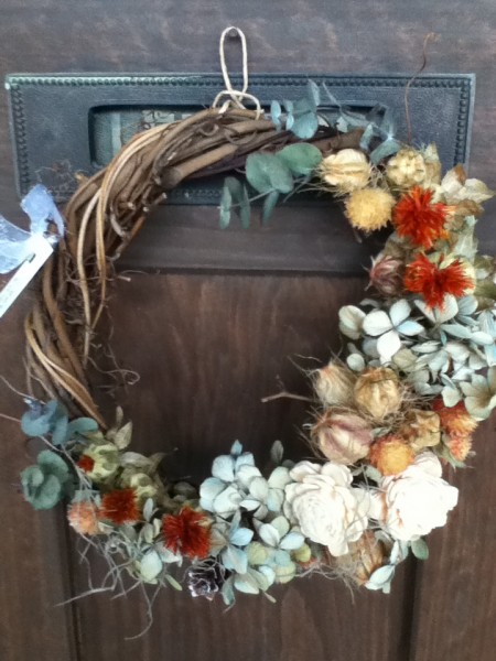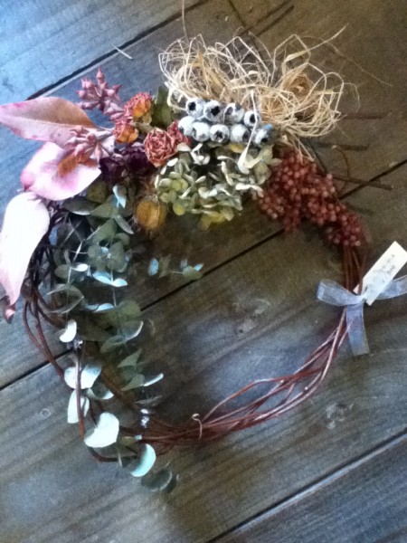 お彼岸もやってきて、いつもの年よりも少し早めの秋を感じるこの頃。湿気も少ないこの時季ならではのドライフラワーのリースを作りました。さりげなく飾ってあるだけで秋の訪れを感じることが出来ます。