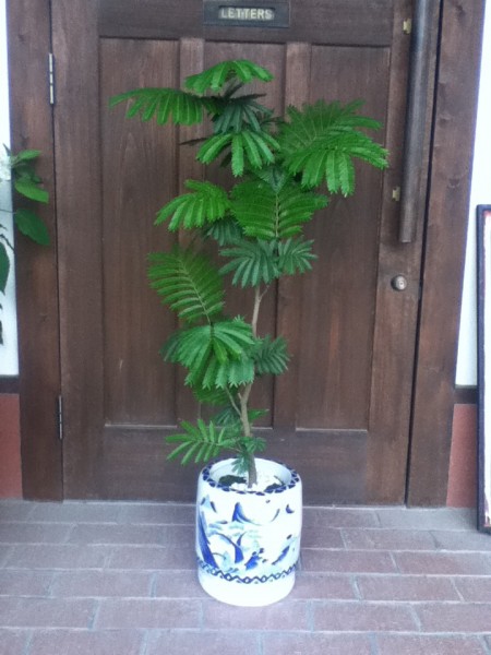 火鉢がもしお家にあって空っぽなら、こんな風に観葉植物の鉢カバーとして使ってみてはいかがでしょうか? 写真の火鉢はお客様のお持ち込みです。和風でもありモダンでもあり、すごく素敵じゃないですか? 火鉢のサイズは様々ですのでお預かりしてピッタリの観葉植物をお探しさせていただきます。