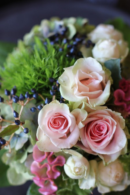 人間同士にも相性があるように花と人間にも相性があるような気がします。花屋さん同士で話をしていても「この花長持ちして重宝するんだよね〜」とある花屋さんが言えば「それがウチの店ではあんまりなんだよ」となったり、「これを入れるとアレンジがひきたつよ」って教えてもらって仕入れてみると自分の作るアレンジにはイマイチだったり。あまり人気なさそうな花が自分が使うとぐっといい味だしてくれたり。その相性を試行錯誤重ねながら見極めていくのも大事な仕事のような、そんな気がしてます。花との出会いもご縁ですね。