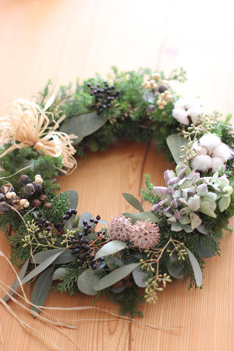 11月28日土曜日、近鉄富洲原駅前の中国料理楽山居さんでワークショップを開催します。針葉樹の香りにつつまれながらリースの土台を作り、それからは自分の思い思いにオーナメントを付けていきます。写真のようにナチュラルな感じが基本となりますが、当日はもっとクリスマスらしいリボンなども用意するつもりですので、ご自分ならではの世界にただ一つのリース作ってみて下さい。