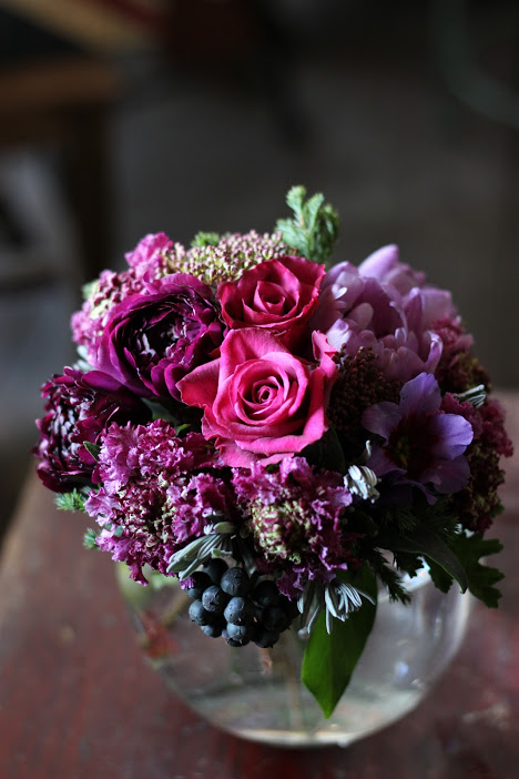 私の大好きな花スカビオサとラナンキュラスの共演です。そして私のたまらなく好きなこの色・・・、こんな花束を束ねられて幸せ。 春の花たくさん出回ってます。たくさんのお花を市場から連れて帰りたいけど、この小さな店では厳選に厳選を重ねなくてはならず、というのは嘘でかなりフィーリングで仕入れてますが、でも泣く泣く諦める花もあります。私の好みに偏りがちなので、一応修正しようともしているのですが、結局かなり私好みのラインナップになっていることは否めません。ごめんなさい。よければのぞきに来て下さい。